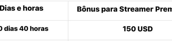 Os streamers premium podem receber BONUS fixo da plataforma por 3 meses.